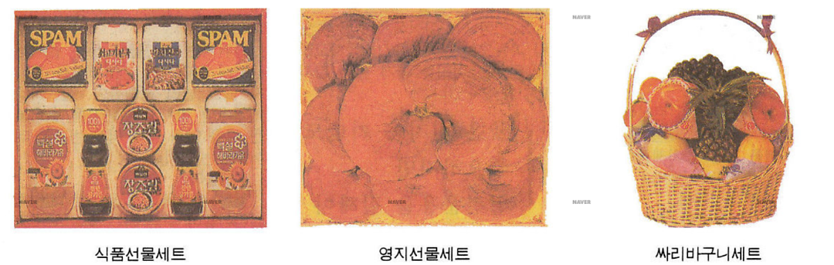 본격적으로 경제가 급성장한 1980년대 이후에는 선물 종류가 더욱 늘어났다. 넥타이, 양말 등 잡화뿐만 아니라 곶감, 굴비, 정육 세트 등이 인기였다. 비누나 화장품 같은 생활용품도 여전히 인기가 좋았다. 백화점들은 앞다투어 설 선물을 내놓고 고객 유치 경쟁을 벌였다. 저마다 ‘고급 품질’을 내세우고 화려하게 포장했다.
